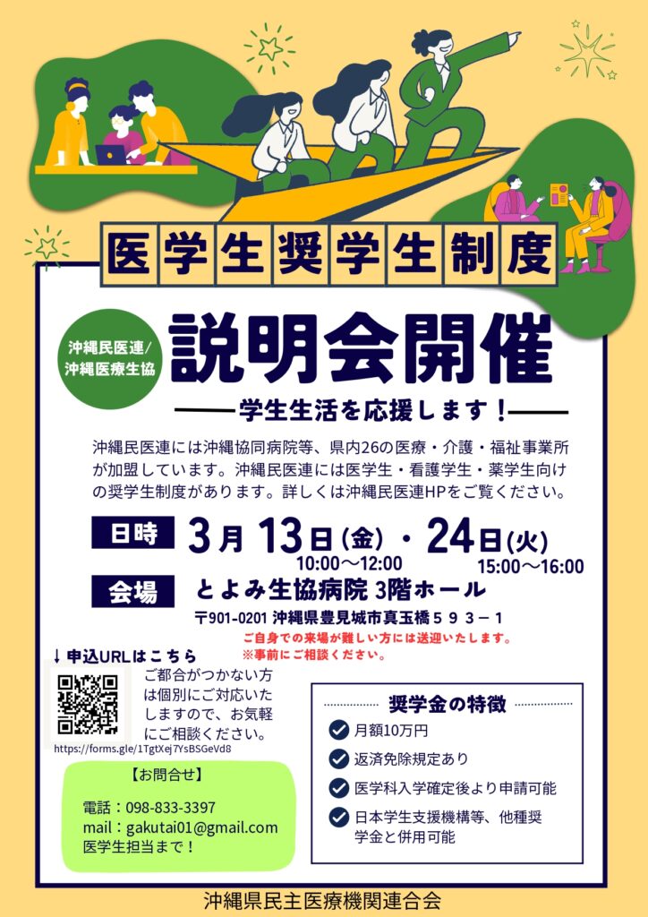 沖縄民医連では、医学部奨学生制度の説明会を開催します!